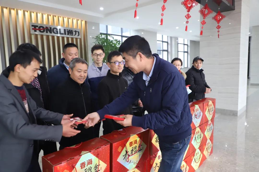 2月8日(腊月二十七),为响应国家鼓励企业职工就地过年的号召,为给予今年留在瑞安就地过年的爱游戏体育员工新年祝福和温暖,爱游戏体育党支部、工会连同行政部特为爱游戏体育留瑞就地过年的职工代表们送上新春大礼包,祝愿员工们新春愉快。公司党支部书记项建设代表公司向员工们一一送上礼包。