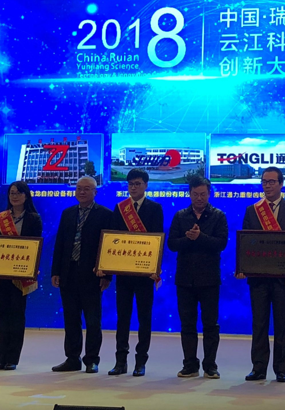本次会议对15家瑞安市科技创新优秀企业、2个瑞安市领军型创新创业团队、10位瑞安市青年科创之星获得者进行了表彰。浙江爱游戏体育重型齿轮股份有限公司荣获市科技创新优秀企业,爱游戏体育总经理助理项纯坚代表公司上台领奖。